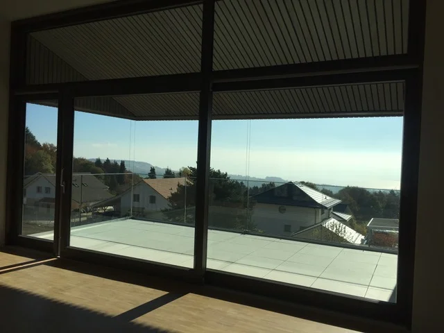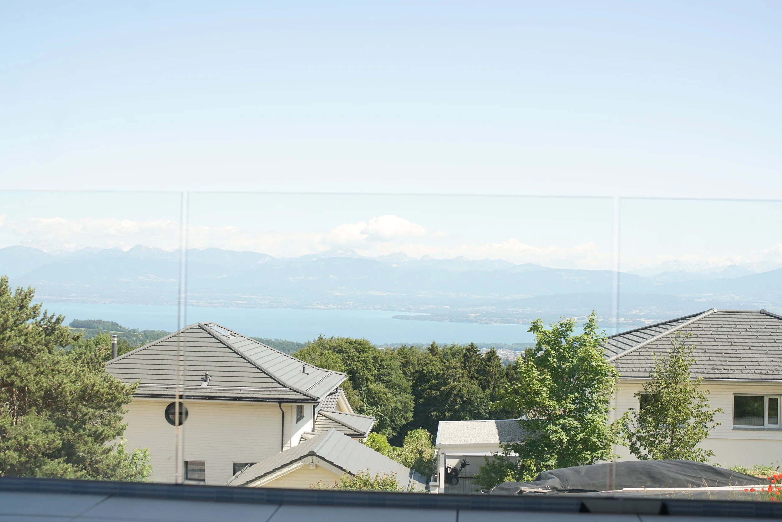 Chaque villa présente des beaux volumes et une grande luminosité. La maison est disposée sur trois niveaux : l’entrée, les deux chambres principales avec leur salle de bain au rez-de-chaussée ; une salle de sejour de 60 m2 au premier étage donnant sur une terrasse de 24 m2 orienté sud ; deux chambres additionnelles et une salle de bain au niveau du jardin. Chaque villa jouit d’un jardin privatif d’approximativement 800 m2, avec une superbe vue sur la vallée et le lac Léman. Au rez-de-chaussée, un parking couvert peut abriter 2 voitures.