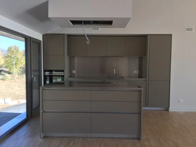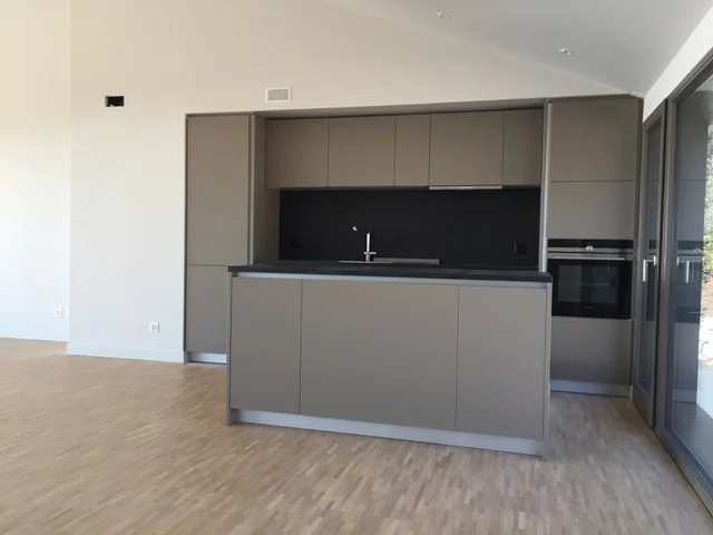 Each villa has beautiful volumes and flooded with light. The house is on three levels: entrance, the 2 master bedrooms and bathroom on ground floor, the 60 sqm living area on the 1st floor with 24 sqm terrace facing south, 2 additional bedrooms with their bathroom on garden level. 800 sqm garden, with great views of the valley. A covered car park on ground floor can fit 2 cars.